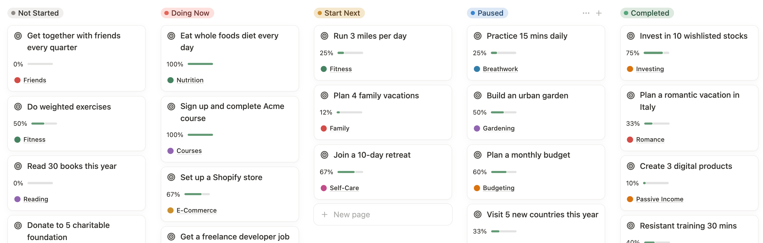 One of the most important elements in a functional Notion life planner is a goal tracker—and not just any tracker, but one that lets you visualize your progress clearly. When you can see how far you’ve come, it’s easier to stay motivated and consistent.