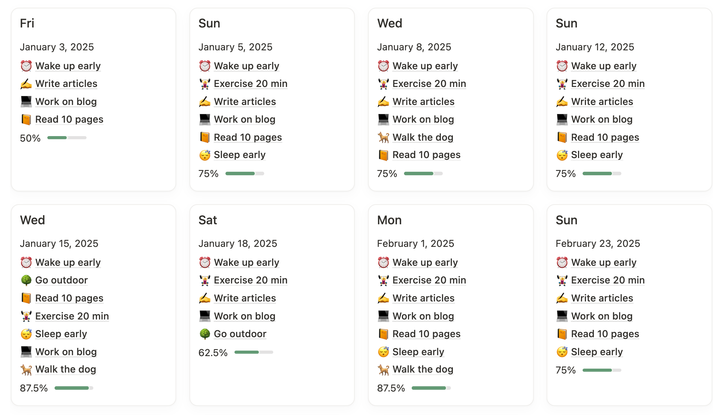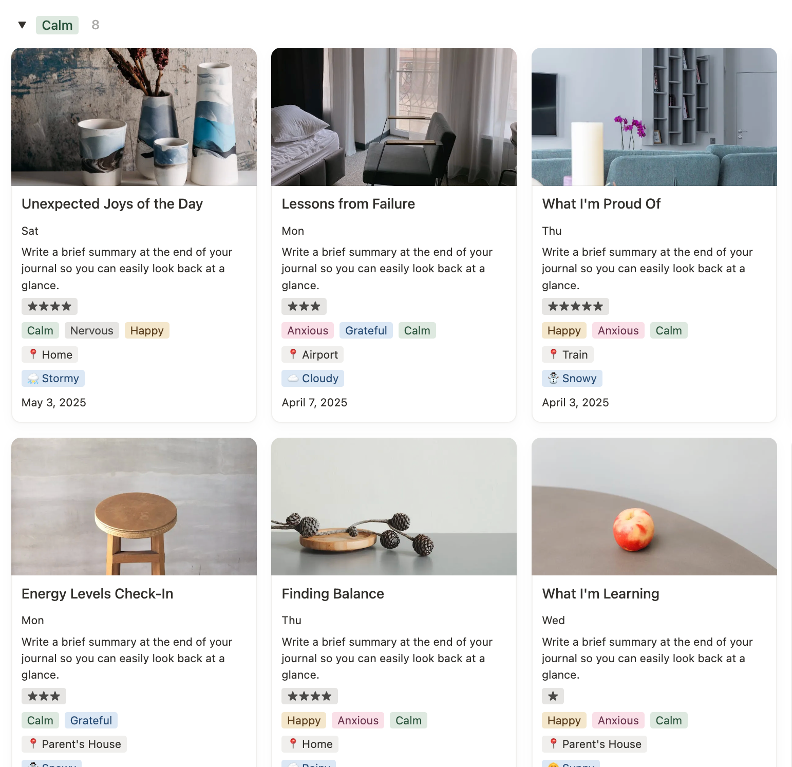 This creates a clean, inspiring overview that makes you actually want to write and revisit your entries.