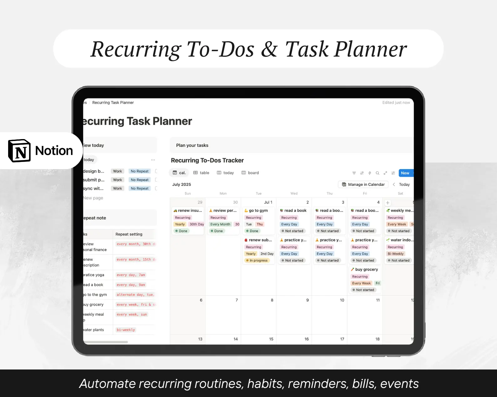 Notion task planner template lets you create repeating checklists, automate status updates, and stay on top of your schedule effortlessly.